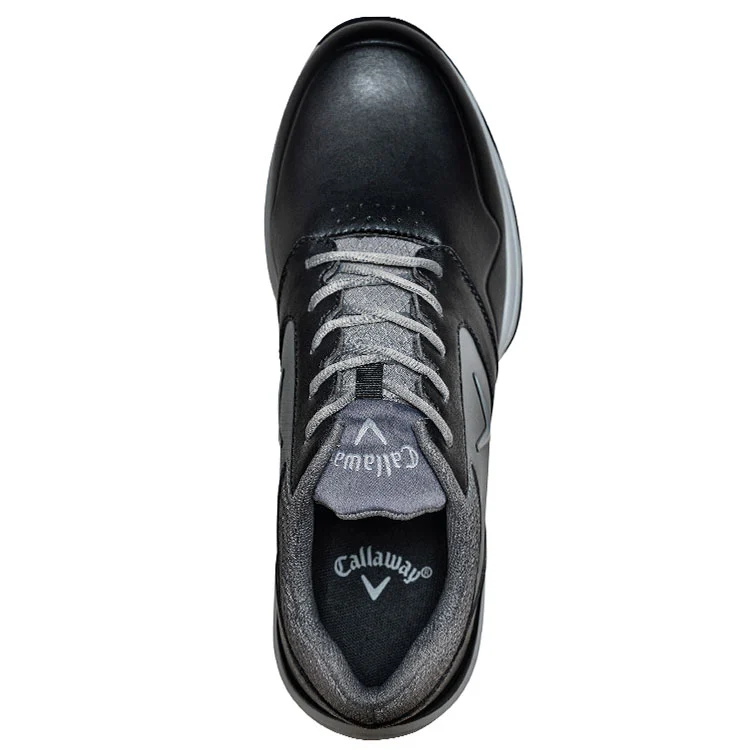 The soft feeling leather upper with PU and mesh panels gives the look, feel but durability needed for golf. A durable finish that is easy to wipe clean at the end of the day. The Callaway Chev LS Black Golf shoe provides high-shock absorption but incorporates a new external heel support structure for stability during the swing. The midsole of the shoe is the ever-reliable Opti-Soft midsole, because it also gives the comfort Callaway are famous for.