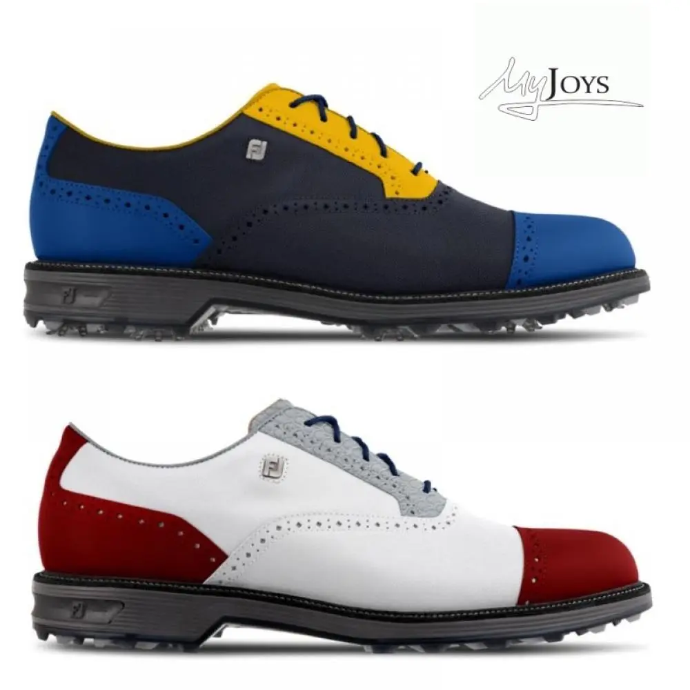 Getting started couldnt be easier, (see instructions below how to buy) choose the base colour for your shoes, then personalise, simply select a saddle colour from the MyJoys range – even lace colour you can choose from. MyJoys also offers the ability to personalize characters on each shoe with embroidery, your name or nickname (please note only on certain styles). If you would rather have a logo or show your patriotic or any side, then you can choose from a selection of images and flags (again on certain styles). To make these the most personal shoe available, FootJoy is also offering an innovative option for customers who have uneven feet sizes. In the past, those of you needing this option have either had to buy two pairs of shoes in different sizes to make a pair or buy an in-between size that never truly fits you. Need a size 9 Medium left shoe and size 9.5 right? No problem with MyJoys by FootJoy! Want your own personalised pair?[BRHeres how to order….